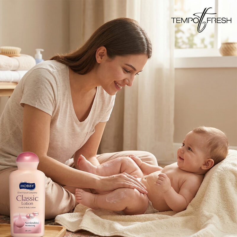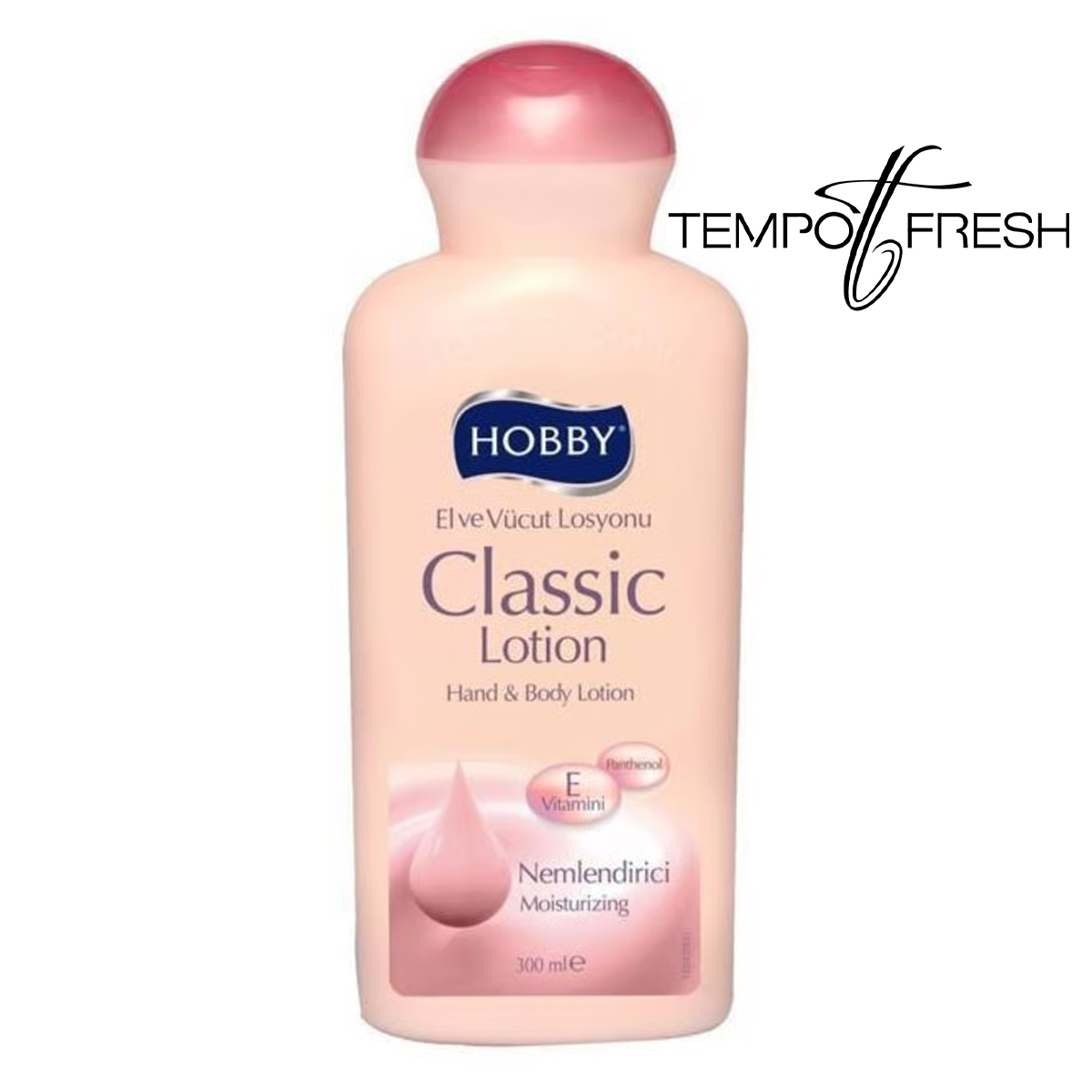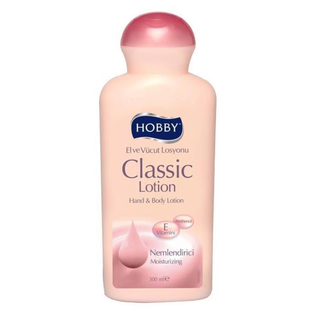 Hobby Classic 300 ml el ve vücut losyonu; panthenol ve E vitamini içeren, cildi nemlendiren, yumuşatan ve günlük bakım sağlayan bir nemlendirici losyondur.