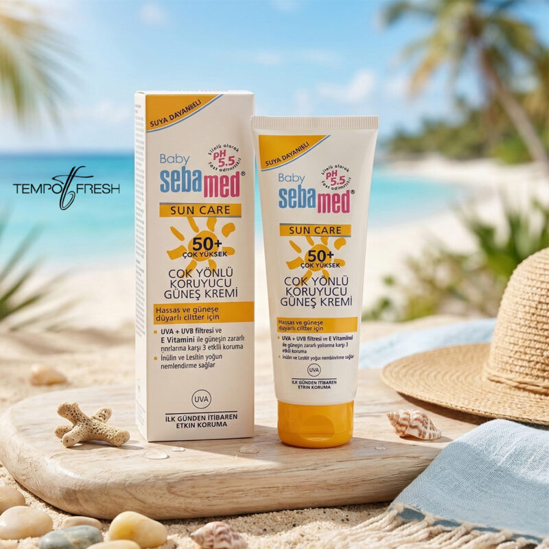 Sebamed Sun 50 SPF Bebek Güneş Kremi; yüksek güneş koruması, nemlendirici etkisi ve hassas ciltlere uygun yapısıyla hem bebeklerde hem de hassas yetişkin ciltlerinde güvenle kullanılabilen bir güneş koruyucudur.